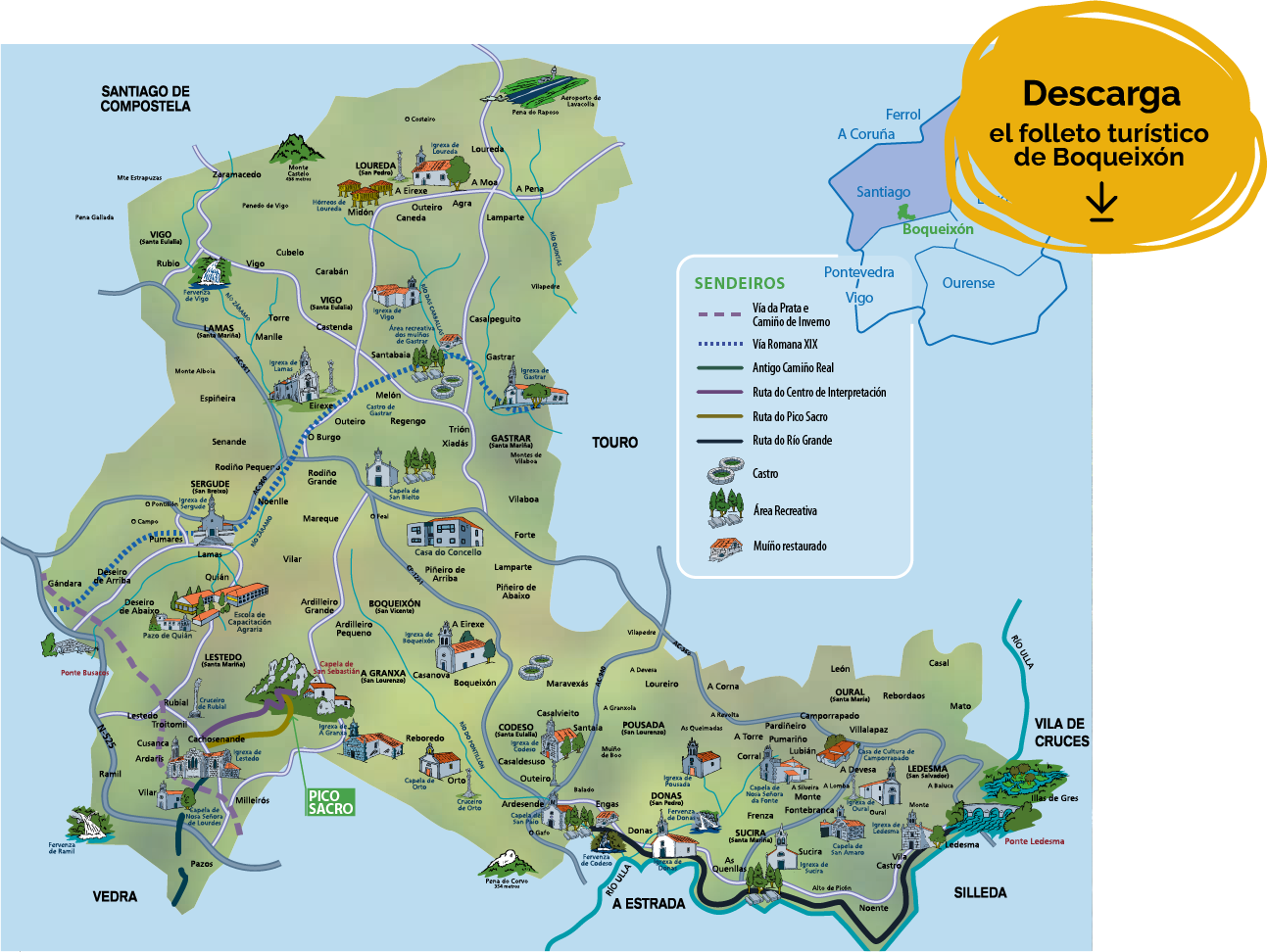 La localidad de Lestedo pertenece al municipio de Boqueixón, a lo que se define como El Paisaje, que está integrado por 14 parroquias. Con el singular Pico Sacro como principal reclamo, este territorio conforma un destino ideal para las personas amantes de la naturaleza, de la cultura, de la historia, de la geología, de las peregrinaciones a Compostela -con la Vía de la Plata y los Caminos de Invierno y Miñoto-Ribeiro- o de las leyendas jacobeas en torno a la Reina Lupa.
